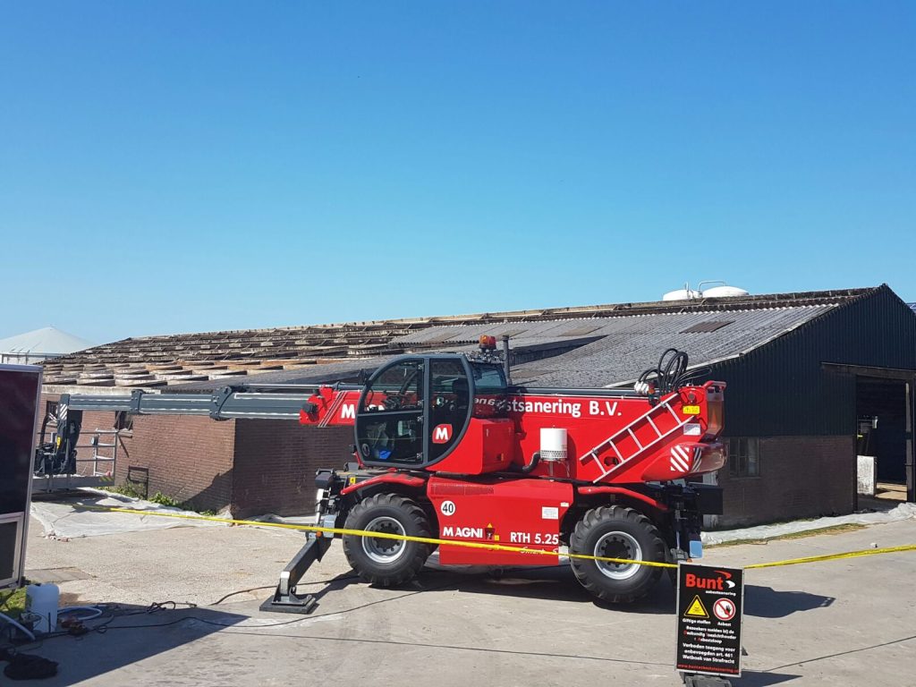 In opdracht van HG Montage hebben wij 1800 m2 asbesthoudende golfplaten verwijderd van deze melkveestal. Doordat de melkveestal vrij stond, was de klus goed met onze Magni 5.25 en Weideman T4108 te doen.